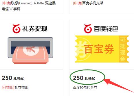 3、在“禮品”界面中,找到你想要換的“百度錢包百寶券”如下圖所示。