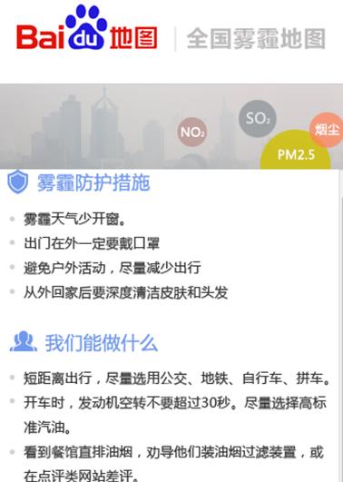這幾天,相信很多北方的小伙伴都被霧霾給嚇到了,今年的霧霾看起來更加嚴重的樣子。雖然小編身在天空藍的不像話的廈門,但是過幾天霧霾也會南下,飄來廈門,不由得有點擔心。有用戶在問,百度地圖怎么查霧霾?今天,小編就為大家帶來百度地圖查霧霾方法,一起來看看吧。