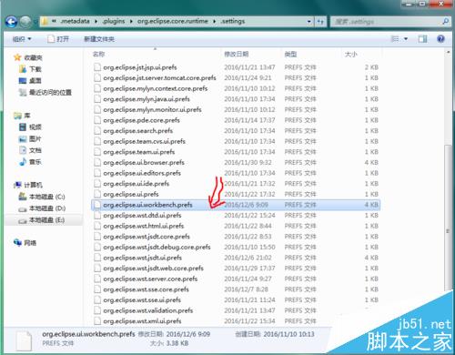 4、選擇org.eclipse.ui.workbench.prefs文件,請您仔細對照文件名,使用您的文本編輯器打開此文件(notepad++ editplus 或者右擊-->以記事本打開)