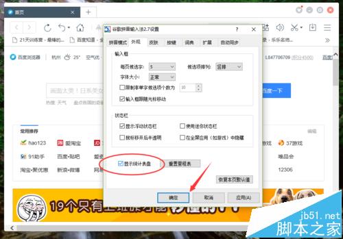 6、在外觀選項卡中,找到“顯示統計表盤”并將此選項勾選,,再點擊“確定”按鈕。如圖所示;
