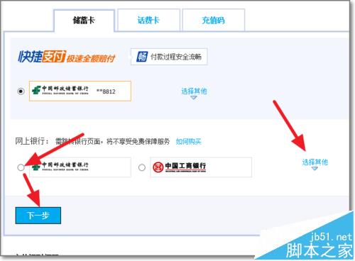 2、在充值的時候,選擇非快捷支付的銀行卡,而選擇其他銀行卡。