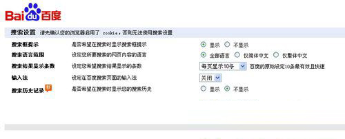 此時我們看到在百度搜索旁面沒有手寫輸入的提示,我們看頁面右上角“搜索設置”,如圖: