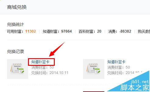 知道財(cái)富值大于50才能夠兌換知道補(bǔ)簽卡
