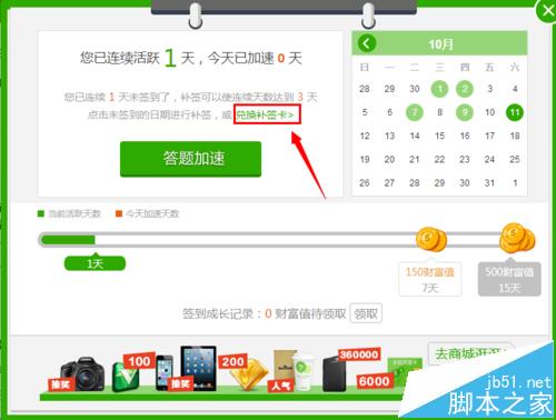 2、如果你還沒有補(bǔ)簽卡,請(qǐng)先點(diǎn)擊兌換補(bǔ)簽卡進(jìn)入知道商城兌換該道具。