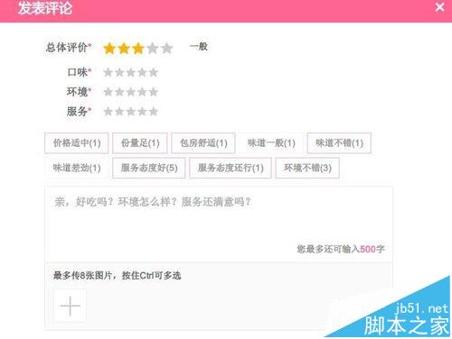 6、評價訂單。對于這次的消費,你自己和朋友感覺如何就可以在這里進行評價了,給多少星,口味如何都可以進行填寫,如果覺得不錯還拍了照片的話也可以在這里都寫出來可以供網友參考。