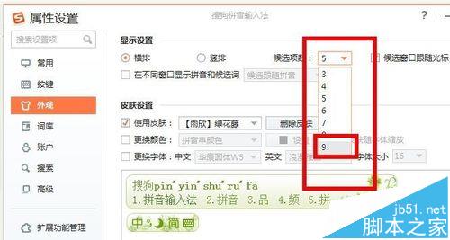 狗輸入法選詞默認(rèn)是5個(gè),可以調(diào)成9個(gè)。