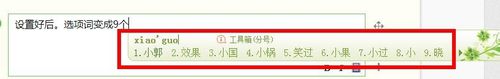 5、設(shè)置好后。選項(xiàng)詞變成9個(gè)的效果。