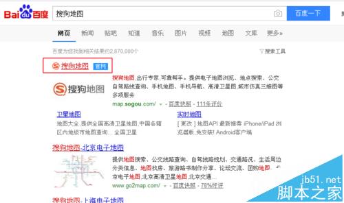 2、在百度搜索框輸入搜狗地圖,如下圖所示: