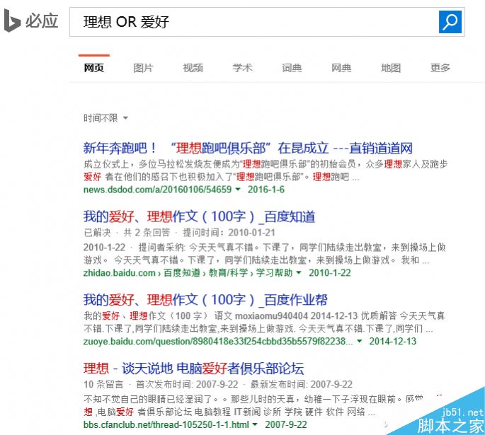 用大寫的“OR”代表你的多關鍵字/詞中的選擇,“A OR B”的搜索方式,會將A或B,兩者皆有,都會成為搜索結果。