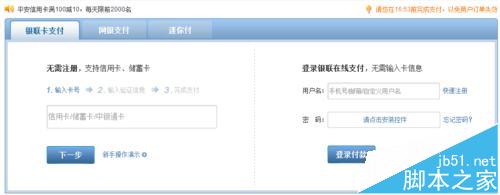 4、在銀聯(lián)卡支付中填寫信用卡卡號