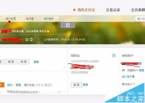 4、來到支付寶首頁,我這里沒有使用新版,點擊“賬戶設置”