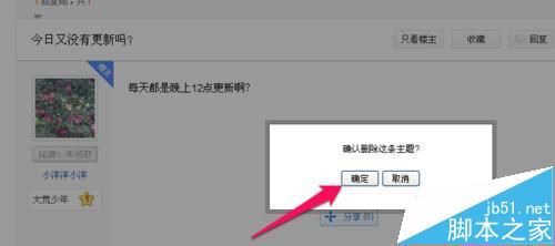 3、在這里再次點(diǎn)擊“確定”完成刪除,刪除之后這個帖子的內(nèi)容都沒有了。另外也可以私信聯(lián)系貼吧的吧務(wù),小吧主、吧主等刪除。