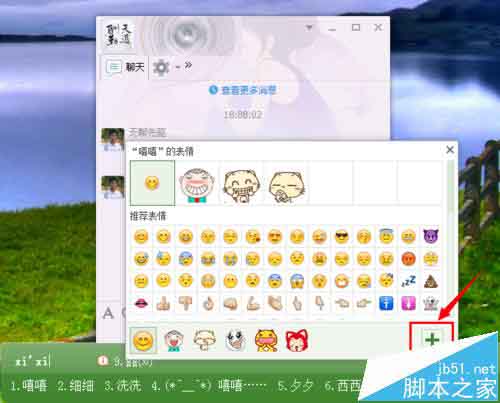 5、這時(shí),我們輸入想表達(dá)的表情拼音,如“xixi”,下圖所示,將出現(xiàn)嘻嘻的表情圖片