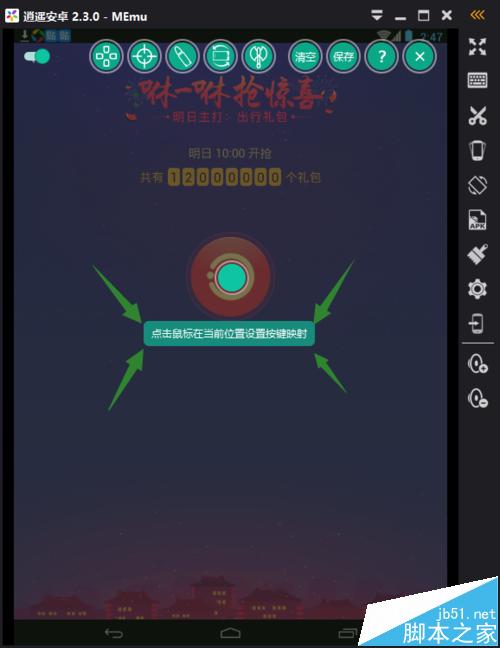 1、鼠標我們已經點累了,那么我們怎么使用鍵盤來“咻一咻”呢?首先,我們可以在,點擊鼠標在“咻一咻”的位置設置按鍵映射,然后在選中“咻一咻”的位置輸入按鍵,右上角保存就能用鍵盤“咻一咻”了。是不是很簡單呢?趕快去試一試吧。