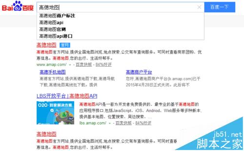 2、在百度搜索高德地圖的關鍵字,直接出現他們下邊的搜索結果