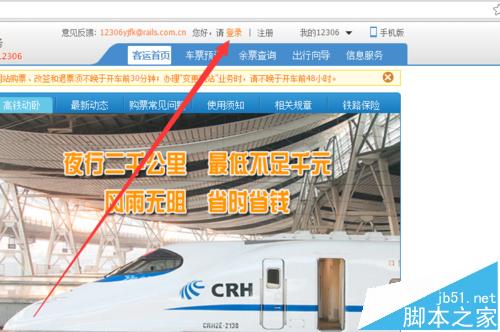 2、進入到12306官方網站后,用戶點擊官方網站的首界面的右上角的【登陸】選項。