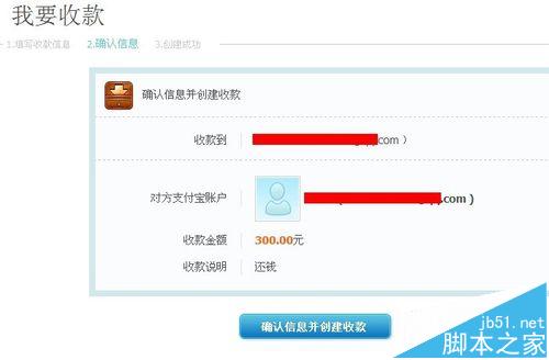 6、然后確認收款信息。沒寫錯吧。點擊確認創建。