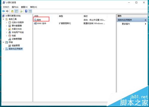 4、這時,在頁面的右側窗口,找到“服務”欄目,左鍵雙擊打開