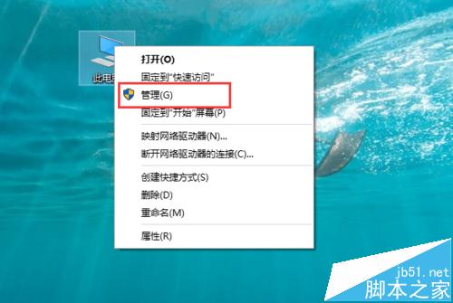 2、在桌面上右鍵點擊“此電腦”(此處為Windows 10,其他版本系統方法類似),在彈出的菜單中選擇“管理”