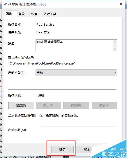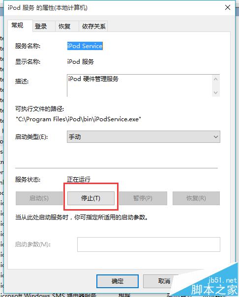 9、在打開的iPod服務屬性設置頁面中,同樣,在常規欄目下把服務狀態進行“停止”處理