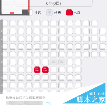7.選擇自己的座位(白的是空位,紅的代表已經選擇的),然后點擊確認選座