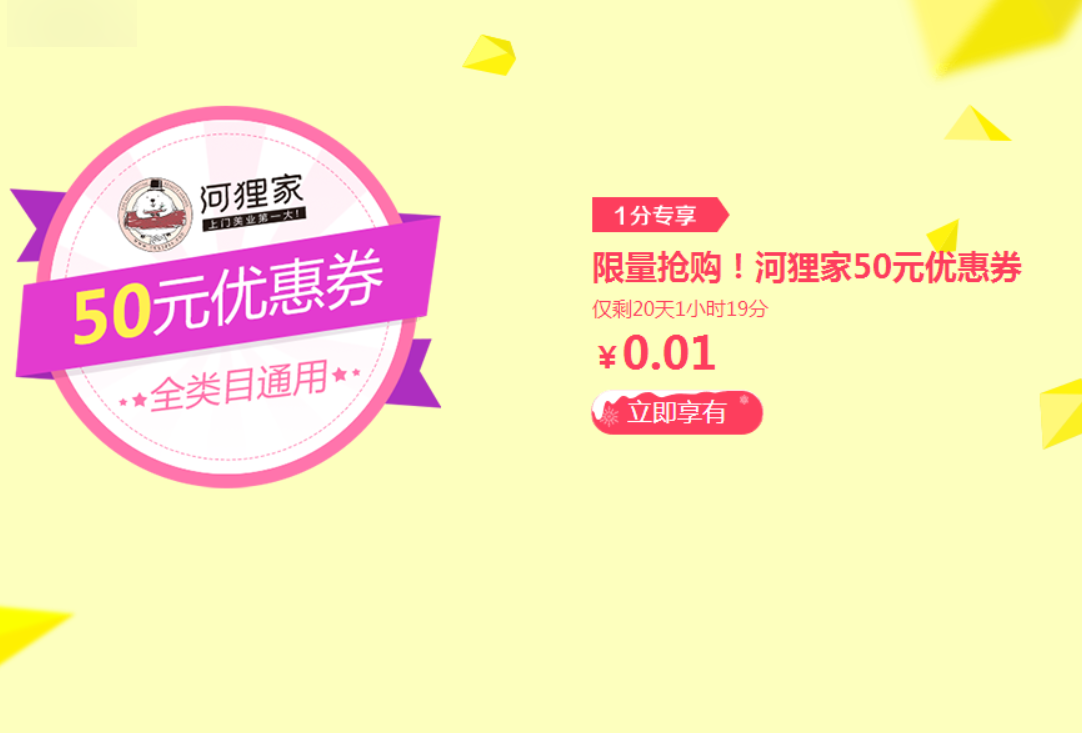 05.一分錢專享限量搶購!河貍家50元優惠券,