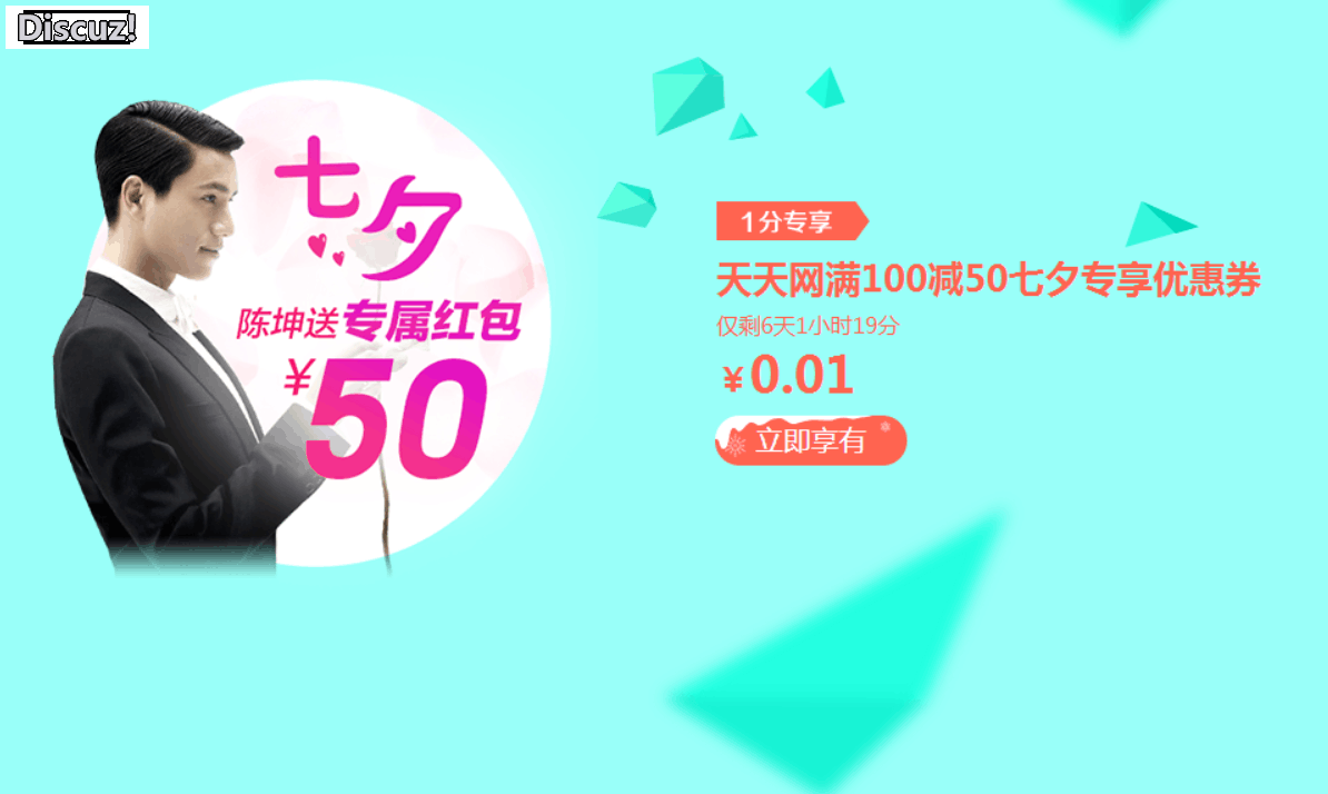 06.一分錢專享天天網滿100減50七夕專享優惠券,