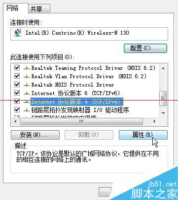 4、在打開的窗口里,選中“(TCP/IPv4)”,點擊屬性。