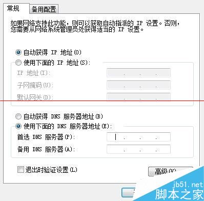6、現在,我們不用管IP地址,只要修改DNS服務器地址即可,選中“使用下面的DNS服務器地址”選項。
