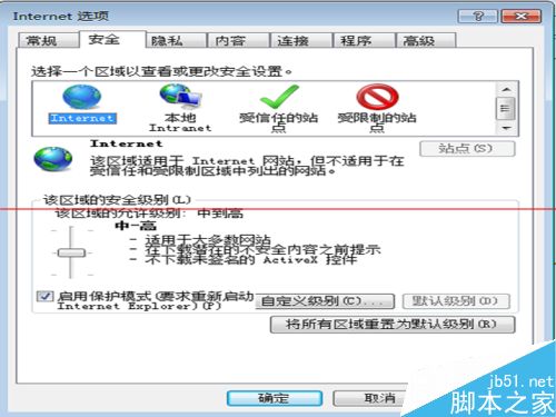2、不知道是什么原因,小編擔心是瀏覽器的安全等級太高,就通過《設置》-《internet 選項》-《安全》,把瀏覽器的安全等級調低,調到中。
