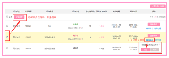 2)對(duì)應(yīng)進(jìn)行中、未開(kāi)始的活動(dòng),可以結(jié)束活動(dòng);可以單個(gè)結(jié)束,也可以批量結(jié)束;