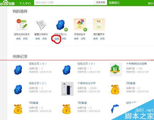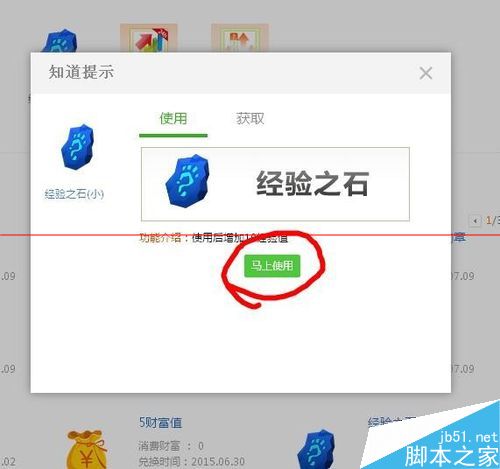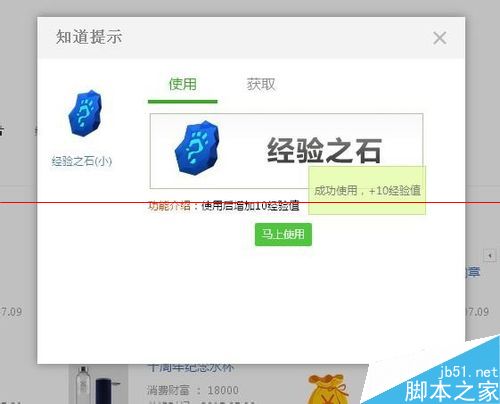 5、在經驗小石上點擊使用這樣你的百度知道就會增加10經驗值,關于經驗值有什么用你懂得。