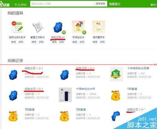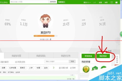 4、在百度知道右側打開我的物品按鈕,可以看到你的道具物品和實際物品。