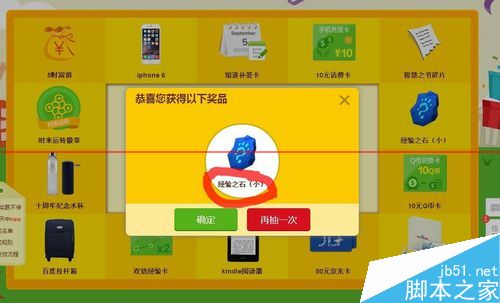 3、抽獎之后運氣較好獲得經驗小石,點擊確定。之后你就可以使用經驗小石了。