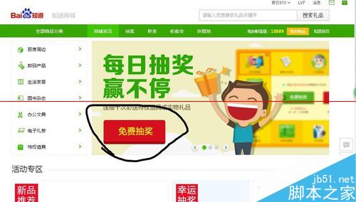 2、把鼠標放在首行,出現浮窗顯示,點擊財富商城,打開頁面。點擊抽獎。
