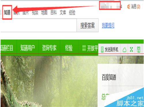 3、在百度知道個人賬戶的右上方,點紅框里的消息。