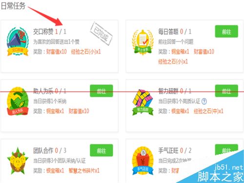 5、這時會跳出下面這個日常任務頁面,看到有好幾個前往綠色字體的按鈕,依次點前往來完成任務。
