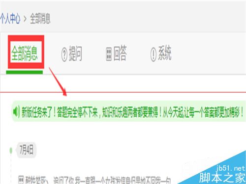 4、在全部消息頁面紅箭頭所指的綠色字體處,點一下。