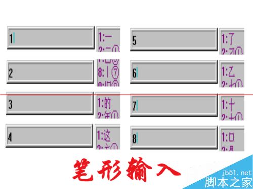 5、數(shù)字鍵代表的筆劃,1“橫“、2“豎”、3“撇”、4“點、捺”、5“橫折”、6“豎彎勾”、7“十”、8“口”。1、2、3、4、5、6代表文字第一筆的筆劃,7、8代表文字首部字形。