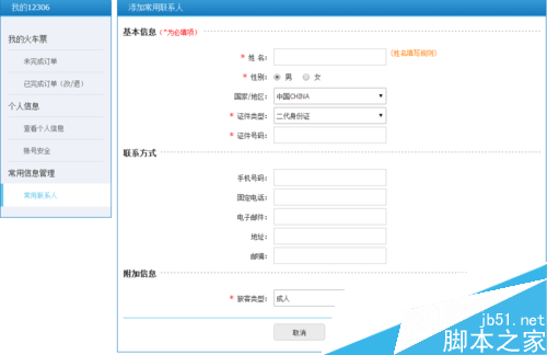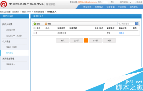 客運首頁-我的12306-常用信息管理-常用聯系人: 仔細核對每一項信息,一般的注冊用戶基本就只有一個常用聯系人,審核起來非??旖?/p>