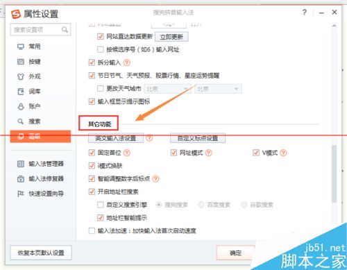 4、然后將設置選項由常規切換至"高級",然后一直往下拉動滾動條,直到我們看到"其他功能"