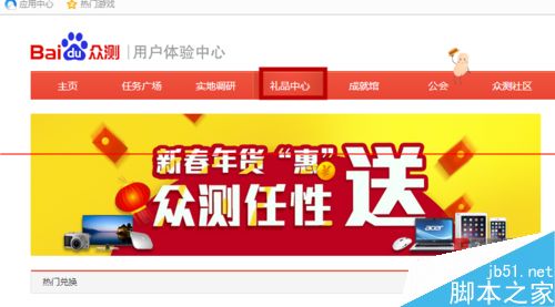 1、首先登陸我們的百度眾測,在“禮品中心”找到我們要兌換的物品,點擊紅色標記“我要兌換”