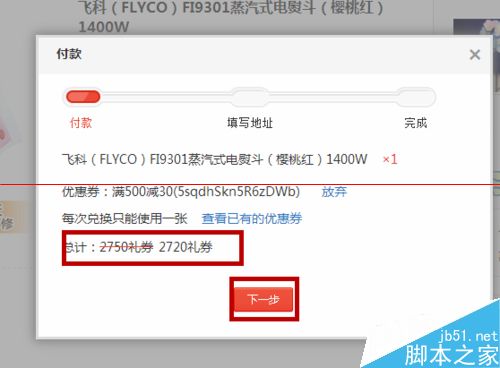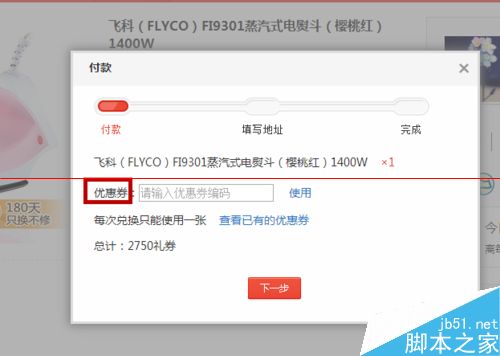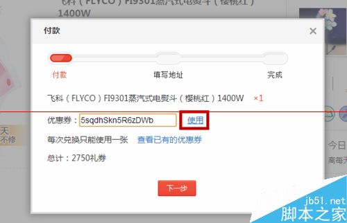 4、點擊使用就會看到兌換的禮券變少,接著我們點擊”下一步“