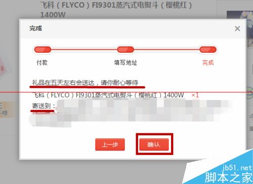 6、確認相應信息,點擊”完成“,它提示你5天左右寄送