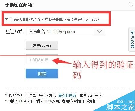 6、然后在更換郵箱之前要對之前綁定的郵箱進行驗證,點擊發(fā)送驗證碼,然后進入之前綁定的郵箱中得到驗證碼,輸入到驗證碼欄中,點擊確定