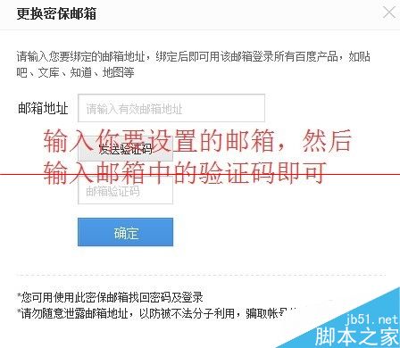 7、驗證成功后我們就可以進行更改了,輸入你要更換的郵箱,同樣得到驗證碼輸入即可更改成功。不過設置的郵箱不能被其它百度賬號綁定哦,否則是不能進行更改的哈。