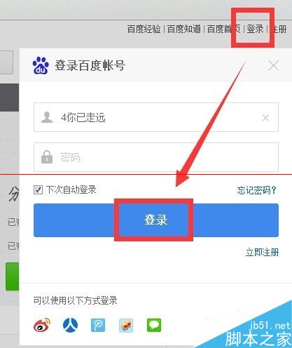 2、在百度經驗頁面上點擊登陸,然后登陸你的百度賬號