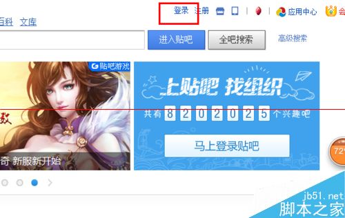 3、進入百度貼吧之后我們點擊右上方的登錄選項,輸入自己百度貼吧的帳號密碼進行登錄。