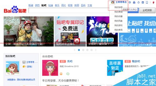 4、登錄成功之后我們就可以看到我們百度貼吧信息了,我們點擊右上角頭像旁邊的昵稱進入個人設置界面。