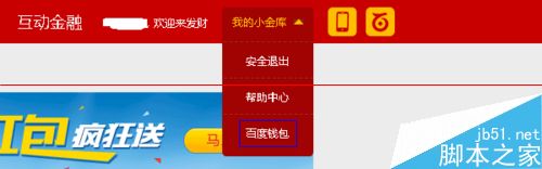 將鼠標放到右上角“我的小金庫”處,彈出2級菜單,點擊“百度錢包”,如下圖: